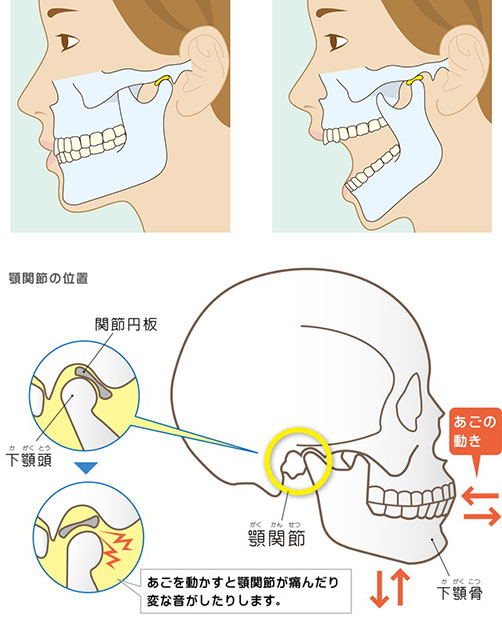 身体は様々なところでバランスを保っています。歯1本の噛み合せが少しでもズレることで体調に大きな異変をもたらすこともあります。例えば、頭痛や肩こり、顔の歪み、顎関節症(あごが痛い、口を開けると音がなる、口が開けづらいなど)といった症状を引き起こすこともあります。